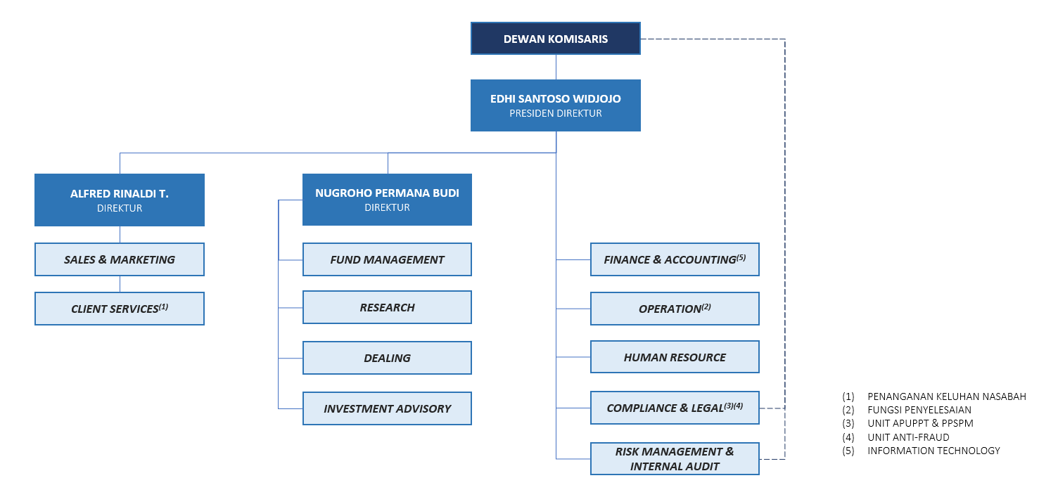 - Komite Investasi – komite yang dibentuk untuk membantu Dewan Komisaris dalam mengarahkan dan mengawasi Tim Pengelola Investasi dalam menjalankan kebijakan dan strategi investasi Perusahaan.